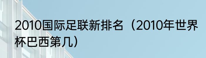 2010国际足联新排名(2010年世界杯巴西第几)