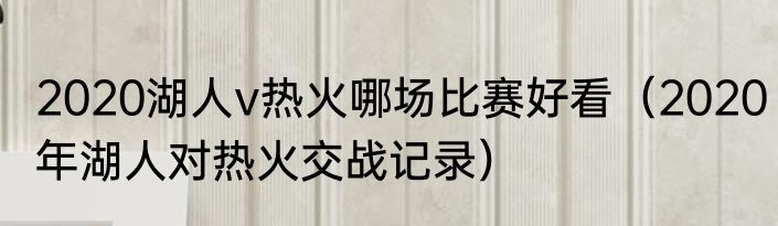 2020湖人v热火哪场比赛好看?