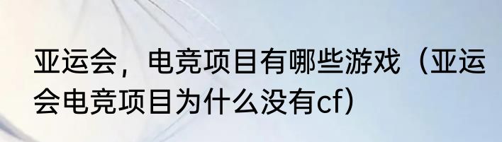亚运会,电竞项目有哪些游戏(亚运会电竞项目为什么没有cf)