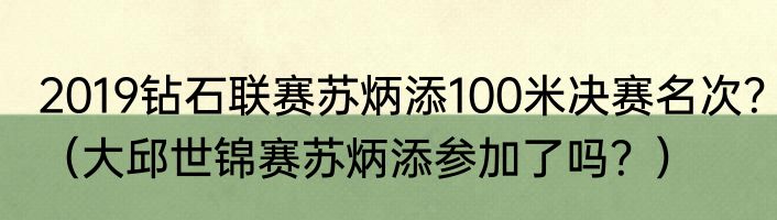 提及2019钻石联赛苏炳添100米决赛名次?(大邱世锦赛苏炳添参加了吗?)的相关内容,许多人不太了解,来看看小美的介绍吧!