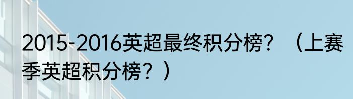 提及2015-2016英超最终积分榜?(上赛季英超积分榜?)的相关内容,许多人不太了解,来看看小美的介绍吧!