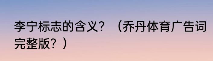 提及李宁标志的含义?(乔丹体育广告词完整版?)的相关内容,许多人不太了解,来看看小嫦的介绍吧!