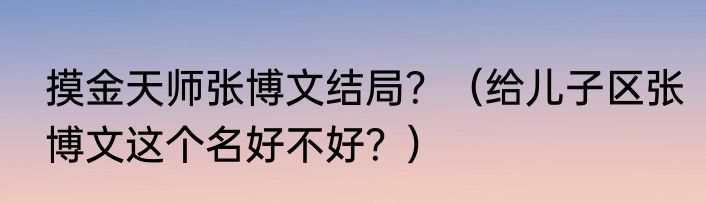 提及摸金天师张博文结局?(给儿子区张博文这个名好不好?)的相关内容,许多人不太了解,来看看小安的介绍吧!
