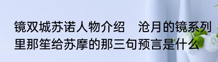 镜双城苏诺人物介绍 沧月的镜系列里那笙给苏摩的那三句预言是什么