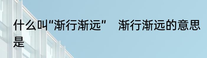什么叫“渐行渐远”?