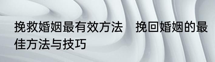 挽救婚姻最有效方法 挽回婚姻的最佳方法与技巧