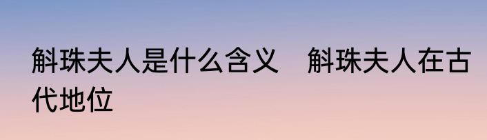 斛珠夫人是什么含义 斛珠夫人在古代地位