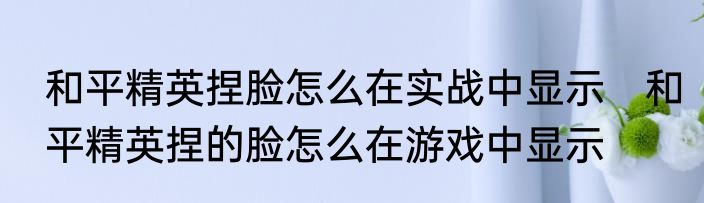 和平精英捏脸怎么在实战中显示 和平精英捏的脸怎么在游戏中显示