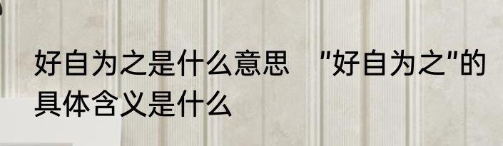 好自为之是什么意思 ”好自为之”的具体含义是什么