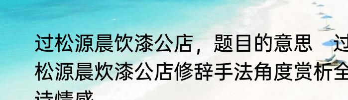 过松源晨饮漆公店,题目的意思 过松源晨炊漆公店修辞手法角度赏析全诗情感