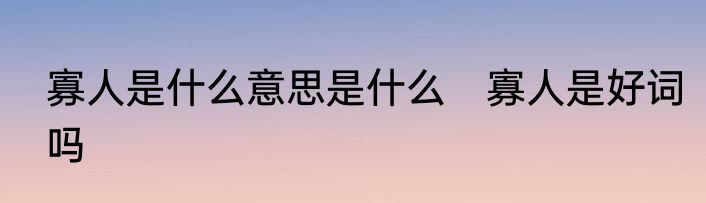 寡人是好词吗?