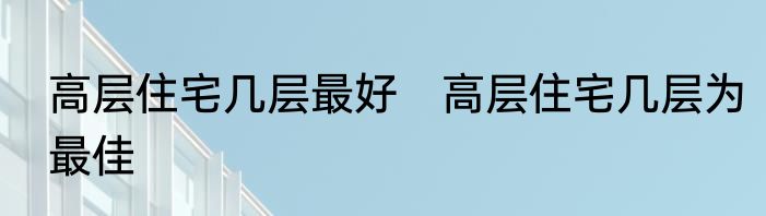 高层住宅几层最好?