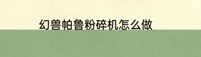 幻兽帕鲁粉碎机怎么做